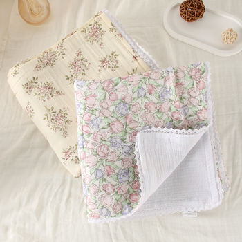 Manta de muselina para bebé, manta envolvente de 110x130cm, colcha fina de gasa con estampado Floral, funda para cochecito de algodón de doble capa, ropa de cama para niños