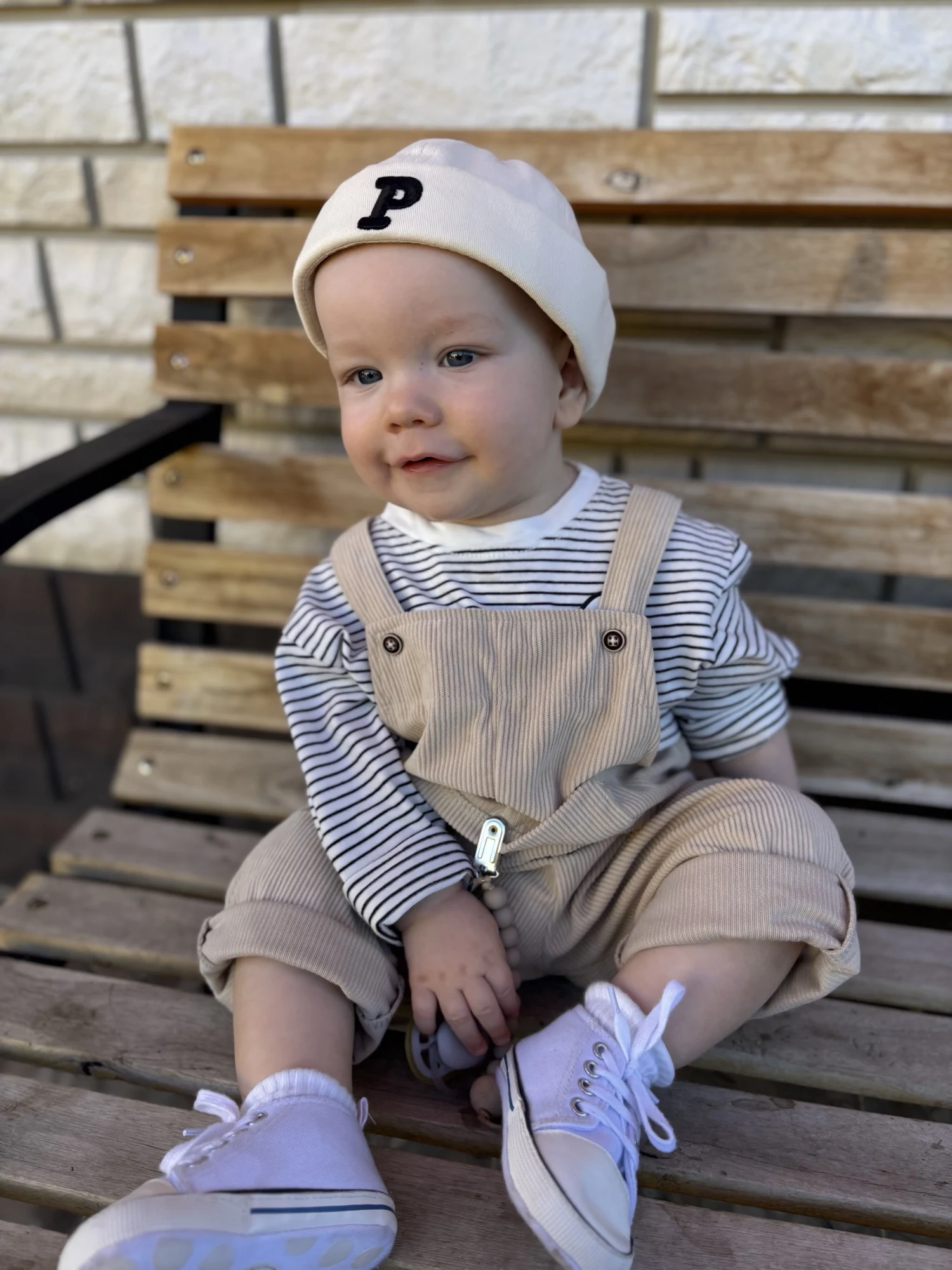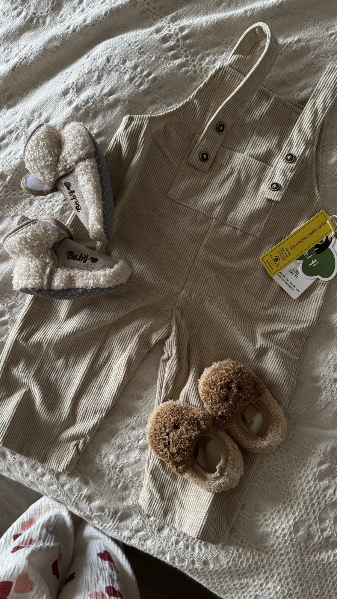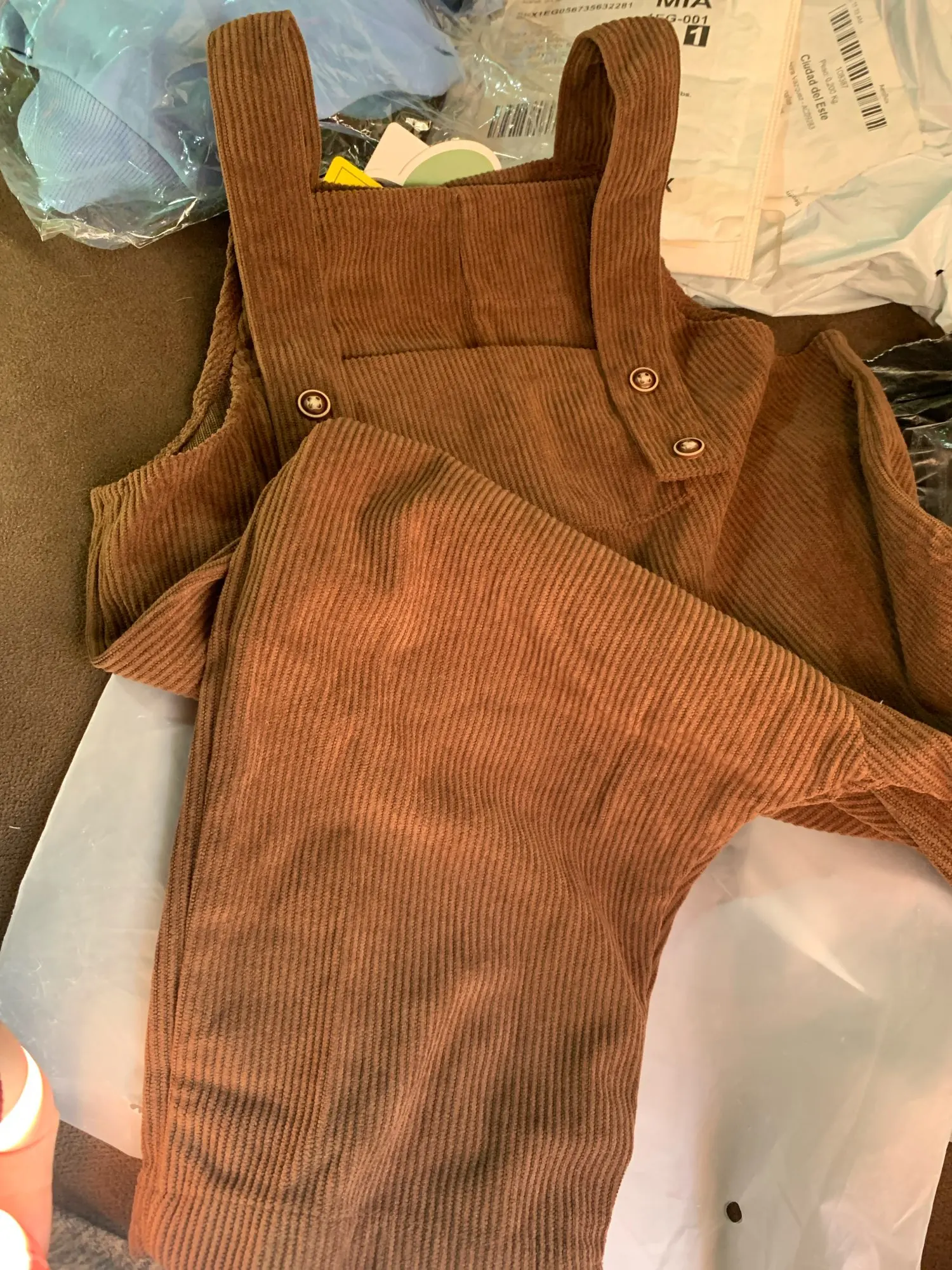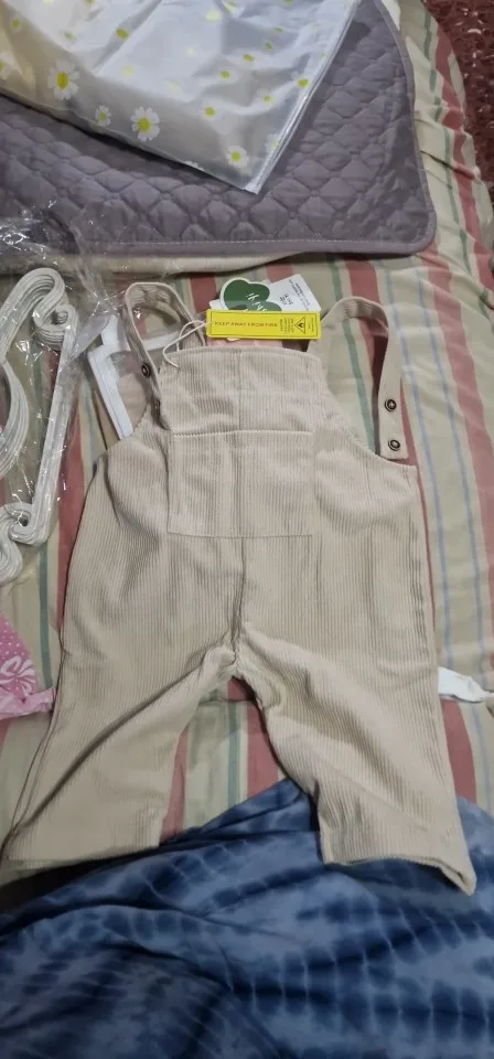 Un mono realmente genial, lo compramos con un poco de espacio extra, puedes subir el dobladillo y caminar con él puesto, es suave, y después de muchos lavados no le pasó nada, sigue siendo igual de bonito y suave, ¡lo usamos todo el tiempo!