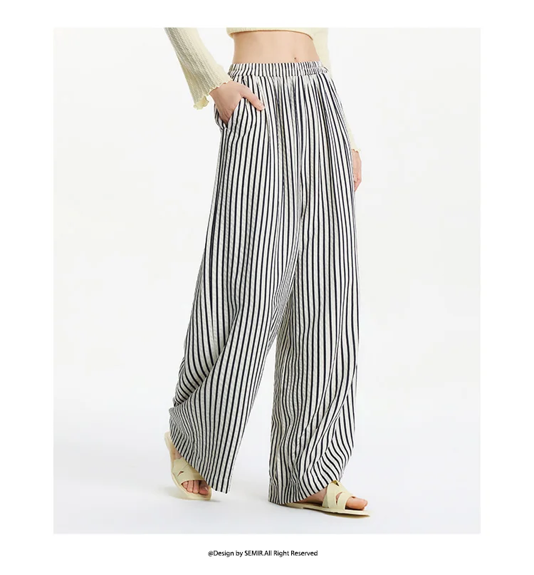 Pantalones Casuales Semir con Cintura Elástica para Mujer, Estilo Chic y Relajado, Verano 2025, Pantalones Anchos a Rayas que Alargan la Pierna, para Caminatas Diarias