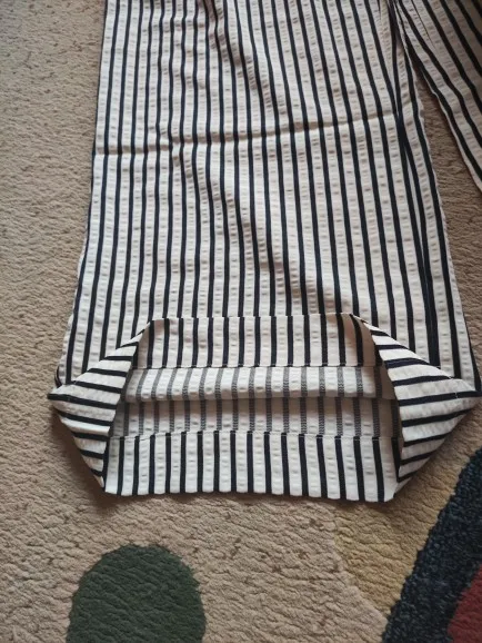 El pedido llegó junto con otros pedidos en un paquete consolidado, el embalaje no estaba dañado. Cometí un error con la talla, pedí según mis medidas: altura 163 cm, busto 73 cm, cintura 96 cm, talla M, resultaron ser muy grandes, especialmente en la cintura donde parecían una burbuja por la falta de volumen. No hay quejas sobre la calidad, las costuras están impecablemente cosidas, no hay hilos sobresaliendo, tuve que coserlos, en la foto ya está en la versión corregida. Los pantalones son bastante anchos, acampanados desde la cadera. No son adecuados para personas altas porque, incluso para mi estatura, son un poco cortos; creo que solo son aptos para zapatos planos, no tacones. . . Le di 5 estrellas porque no es culpa del vendedor que cometí un error con la talla. . . Quizás mi reseña sea útil para alguien, seleccioné de acuerdo con la tabla de tallas. . .