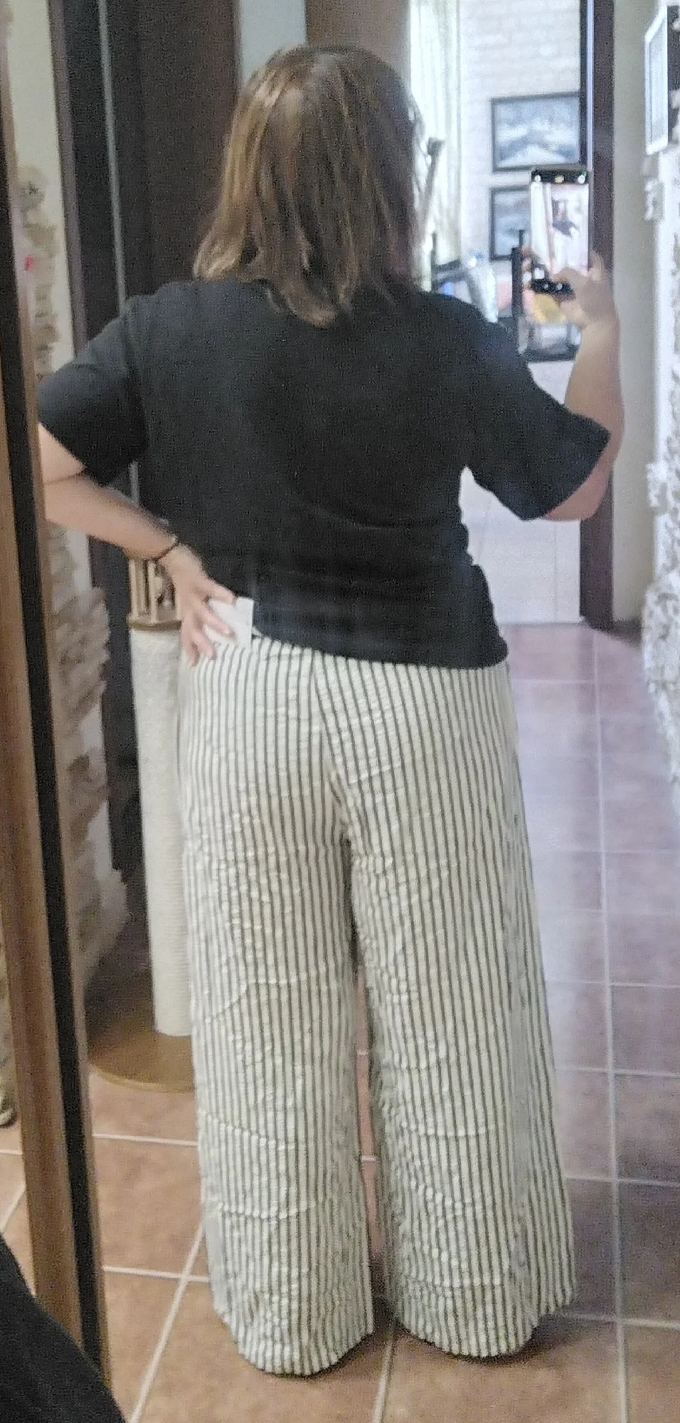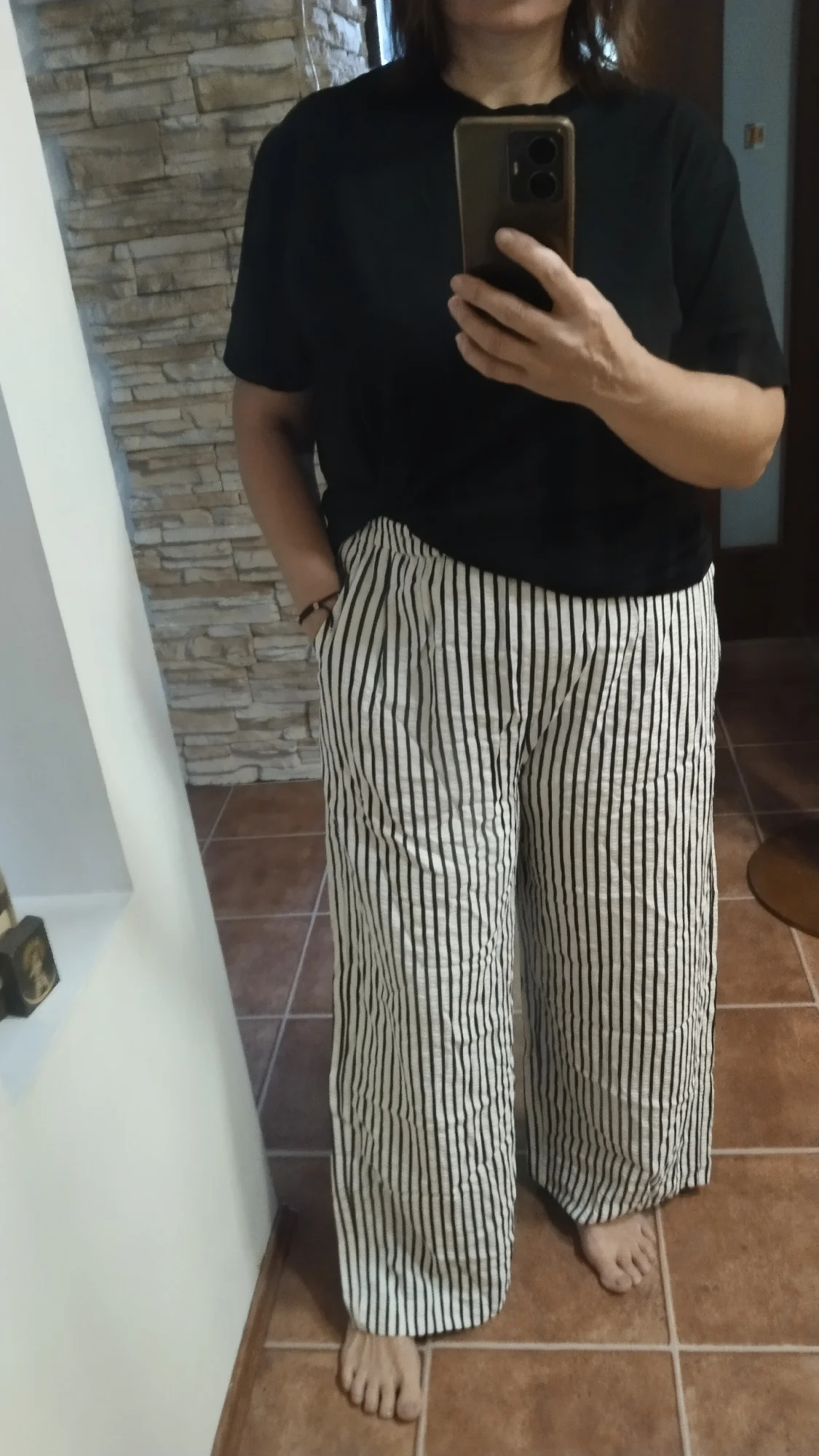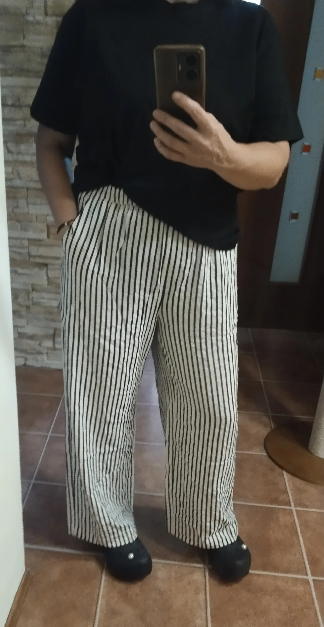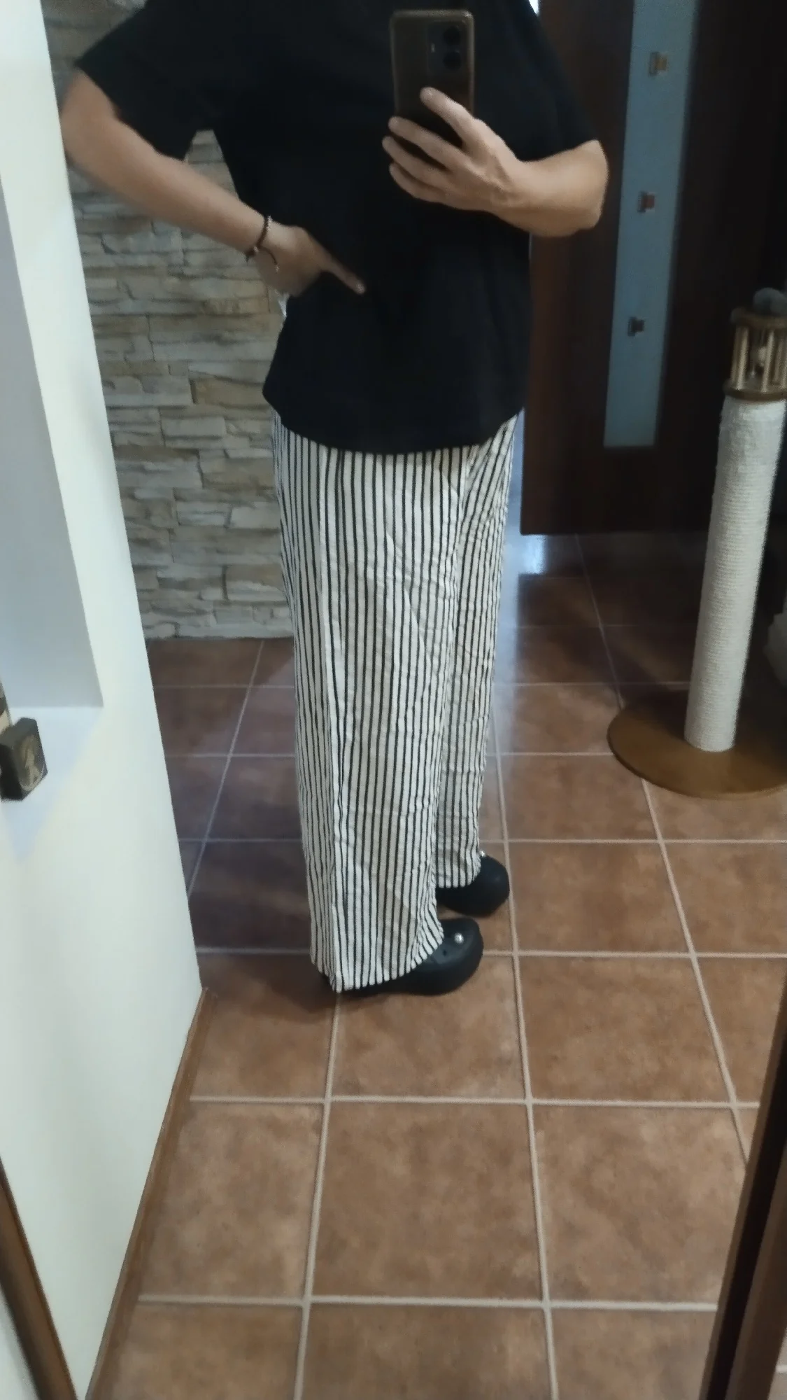 Pantalones geniales y ligeros, lástima que solo estén a rayas. Volvería a pedir este modelo en diferentes colores.