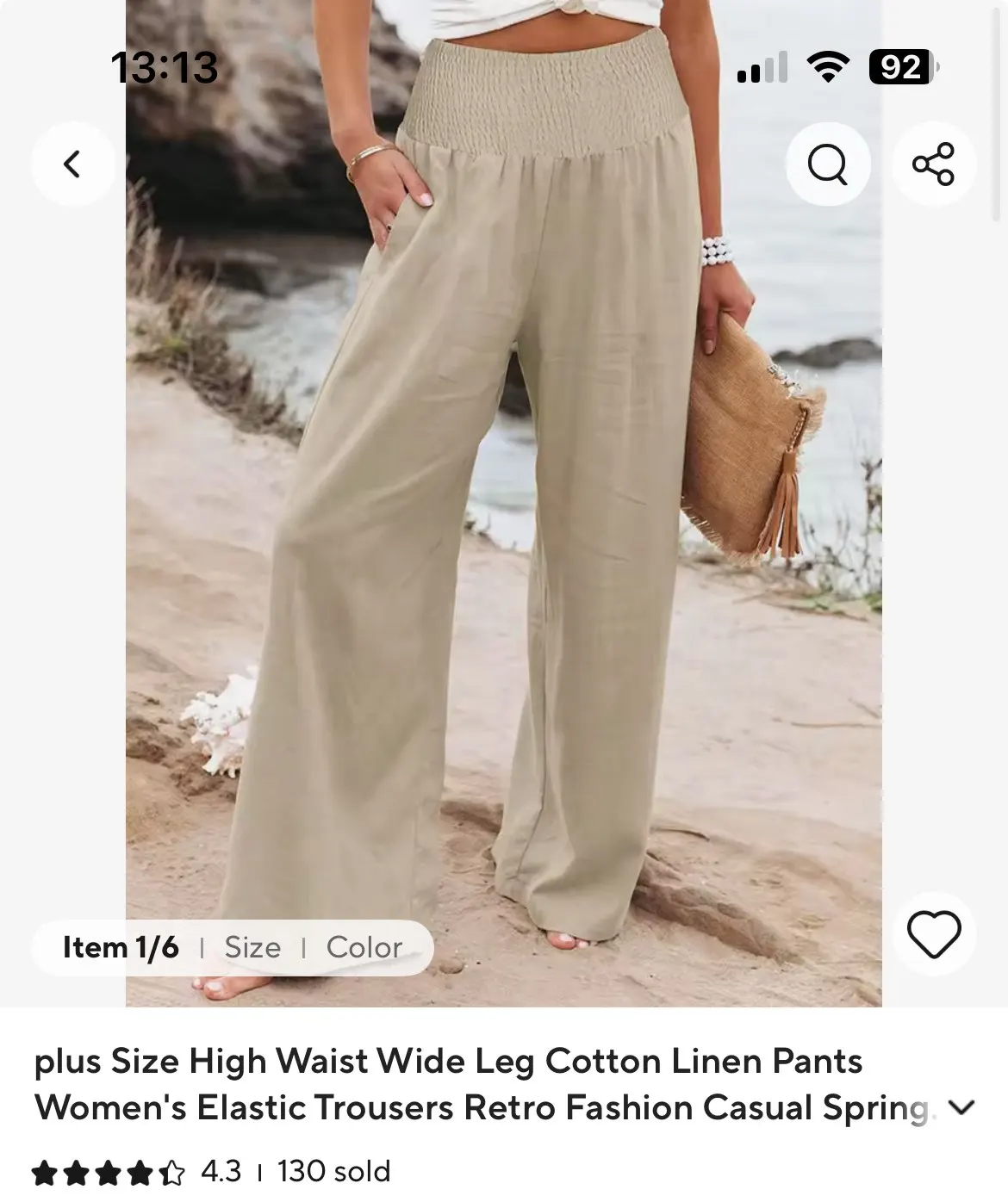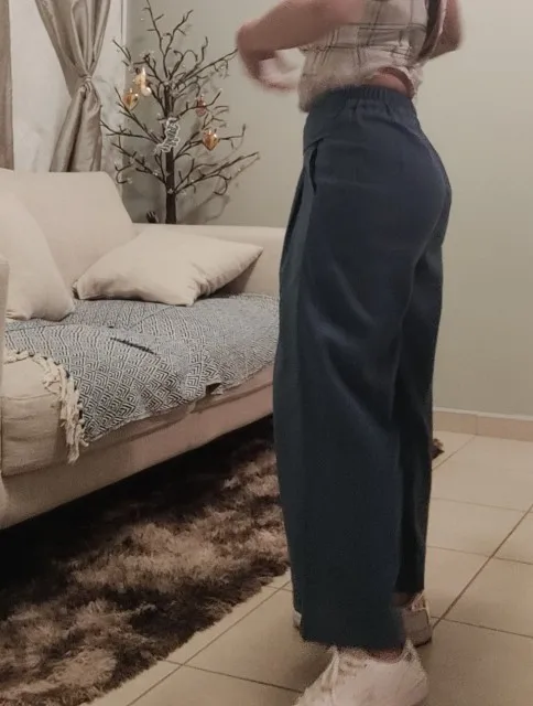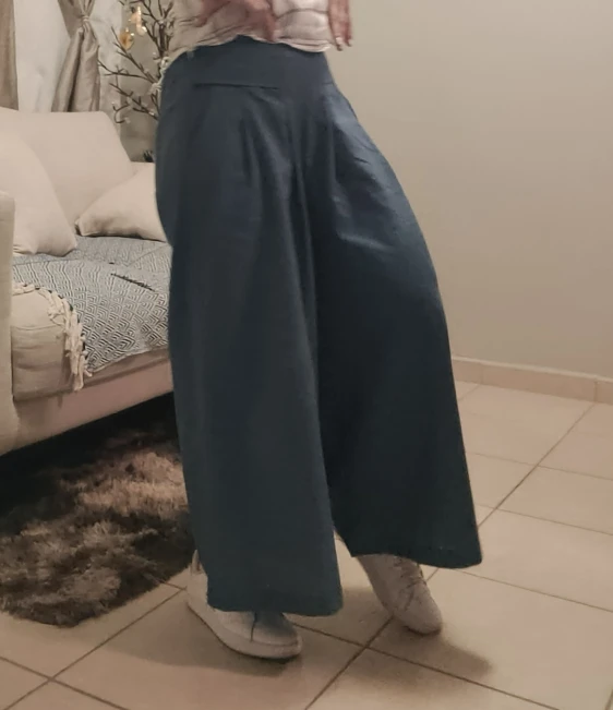 Pedí dos pares de pantalones. El negro, el que se refiere a esta reseña, es realmente de algodón y lino. Un poco corto pero queda bien. El caqui de otra tienda es 100% poliéster. ¡Así que ten cuidado dónde compras tus pantalones de verano!