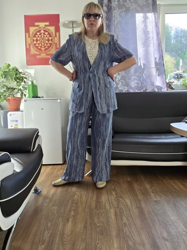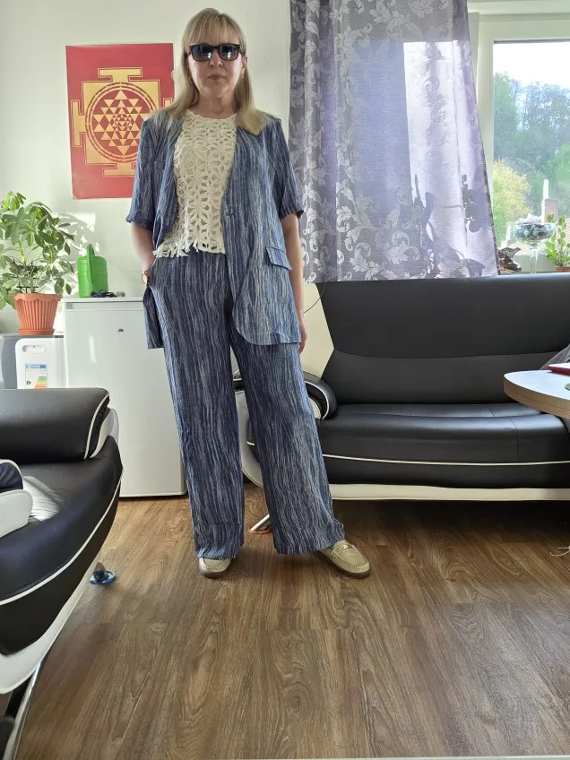 El paquete llegó a Alemania en el plazo de una semana. Un traje excelente y cómodo para el verano. Agradable al tacto y sin peso. La composición es similar al algodón. RECOMIENDO