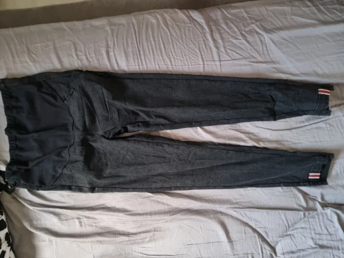 Pantalones geniales. Talla grande. La talla M queda perfecta para caderas de 104 cm. Sí que tienen olor, pero creo que el olor desaparecerá después de lavarlos.