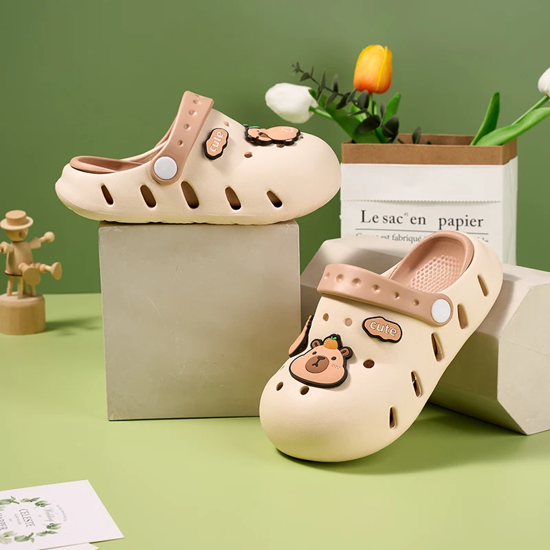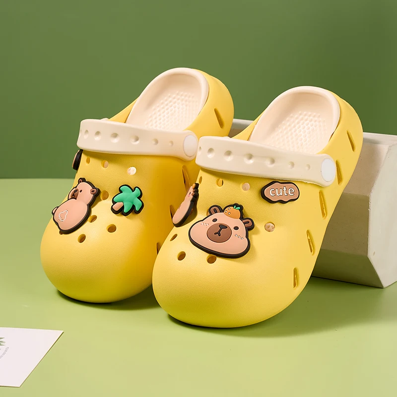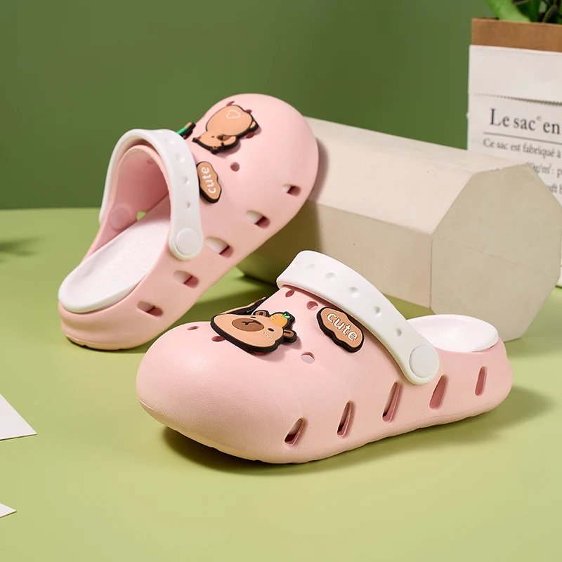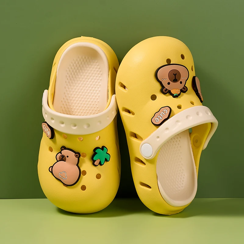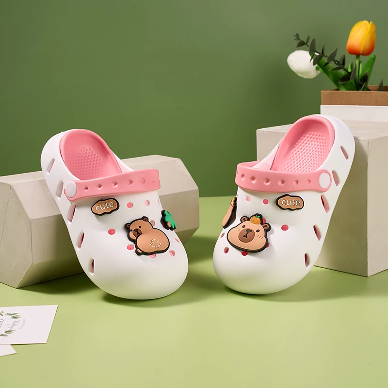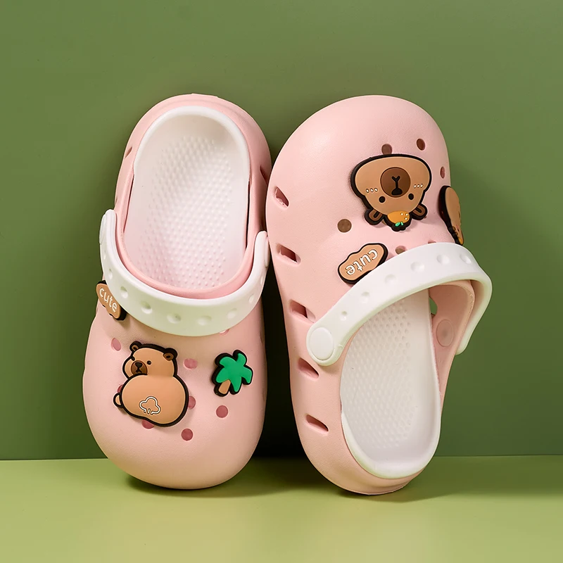 Sandalias de capibara para niñas y niños, zapatos antideslizantes cómodos de verano para la playa, zuecos con punta cerrada, estampado bonito de 6 a 12 años