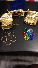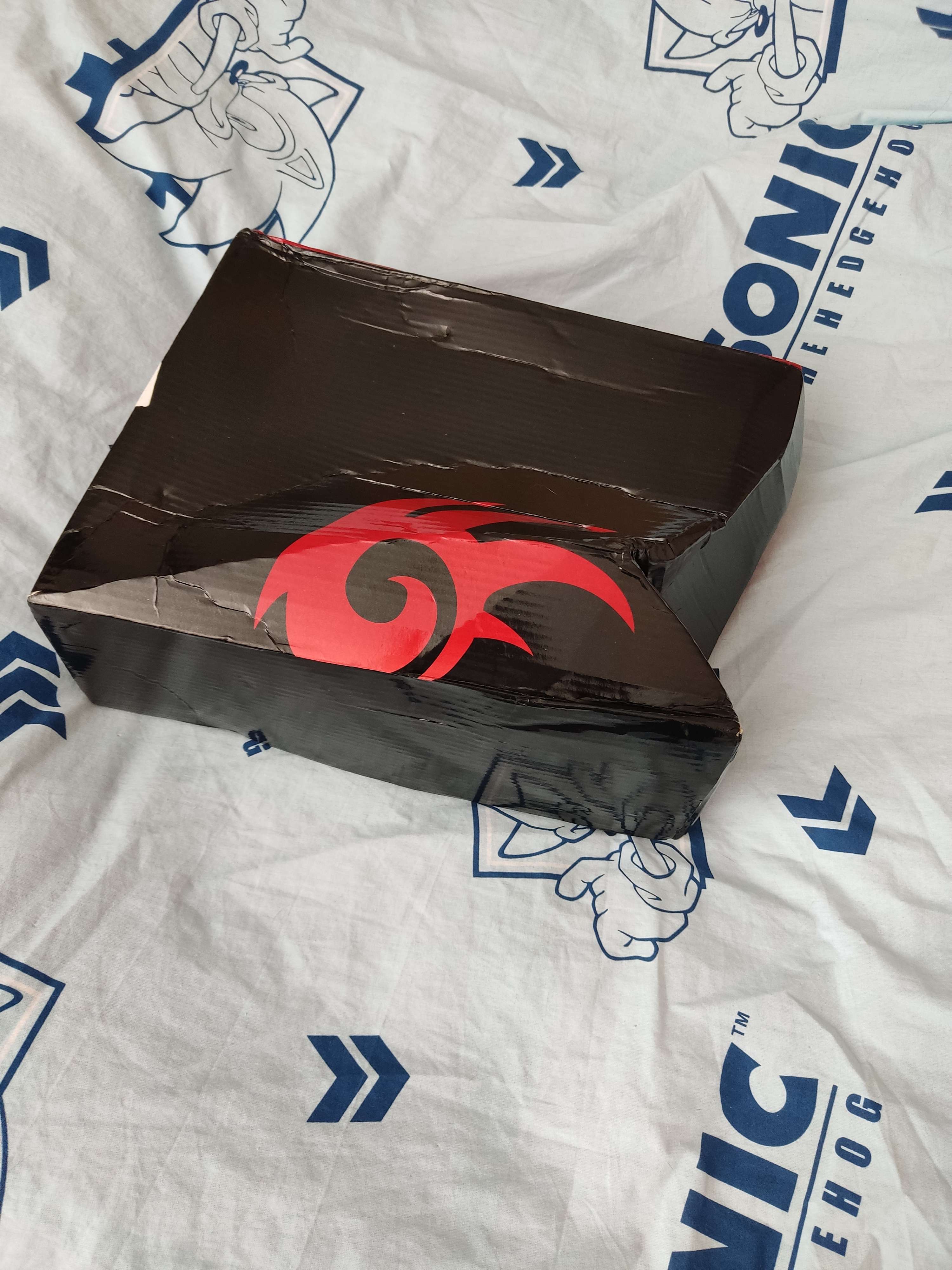 La caja llegó ligeramente arrugada, pero el contenido estaba en perfectas condiciones. Las zapatillas no están mal, me quedan bien. El paquete incluía una bolsa con dos bolsas más pequeñas, una con cinco anillos de metal y otra con siete esmeraldas del caos (hechas de plástico, pero bien fabricadas), todo tal como se indicaba.