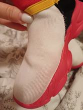 When worn, the white part of the sneakers turns red, but it washes off. took it for a 22cm foot.