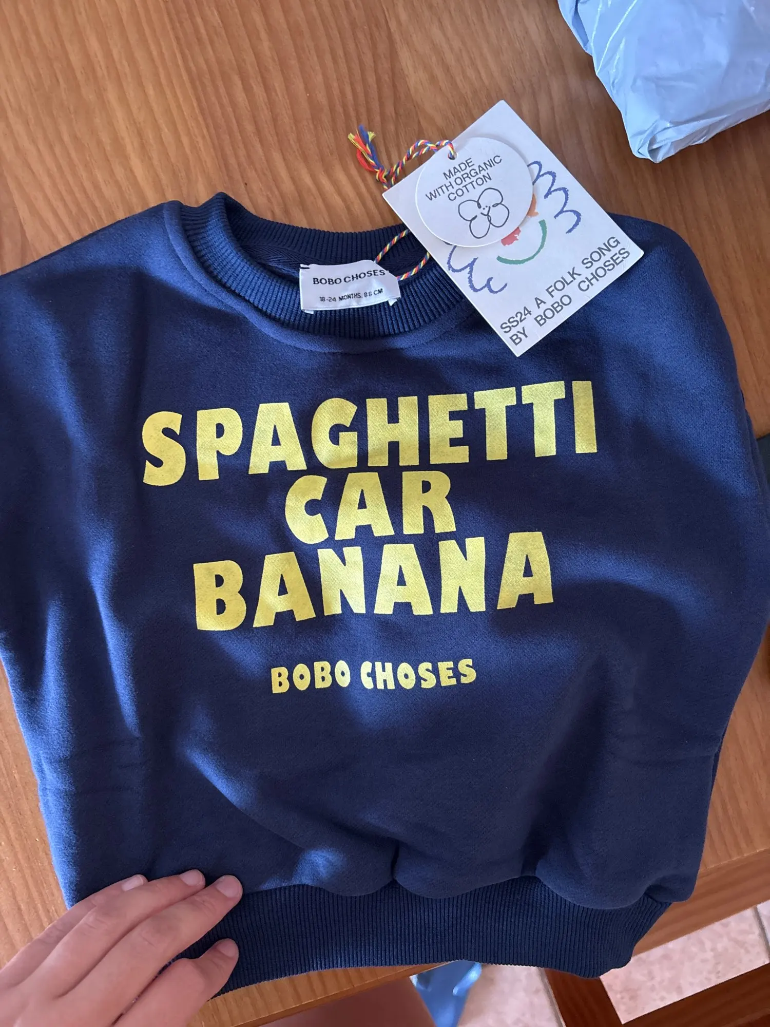 La calidad es excelente. Empaquetado y todas las etiquetas son como las originales. La talla queda perfecta. Tomé la talla exacta. Adoro Bobo Choses. Volveré a pedir.