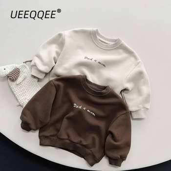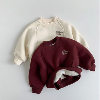 Nueva Sudadera con capucha de invierno para niños, sudadera con forro polar con cuello redondo y letras estampadas de 1 a 6T, ropa holgada y cálida para niños, camisetas para bebés y niñas