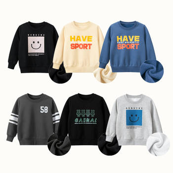 Otoño Invierno niños sudaderas 1-8Y niños cálido polar estampado carta pulóver Tops ropa coreana para niños pequeños ropa nueva