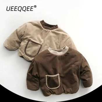 Otoño Invierno niños sudaderas 1-8Y niños grueso cálido polar Patchwork bolsillo pulóver Tops ropa coreana para niños pequeños ropa para niños