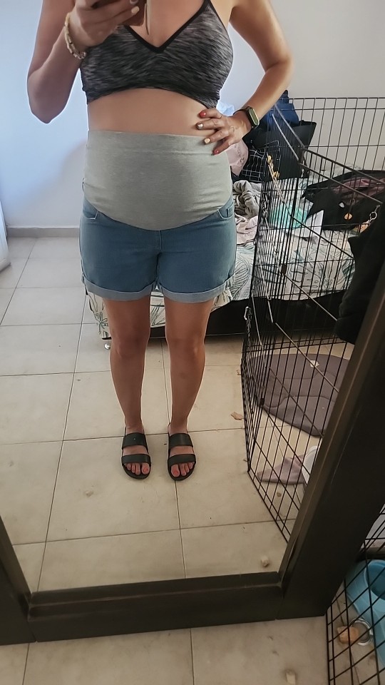 Buenos shorts, inserto de punto suave, ajustables. Actualmente lo estoy usando en mi sexto mes - muy cómodo y parece que todavía tiene algo de espacio. ¡Perfecto para el verano!