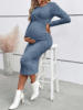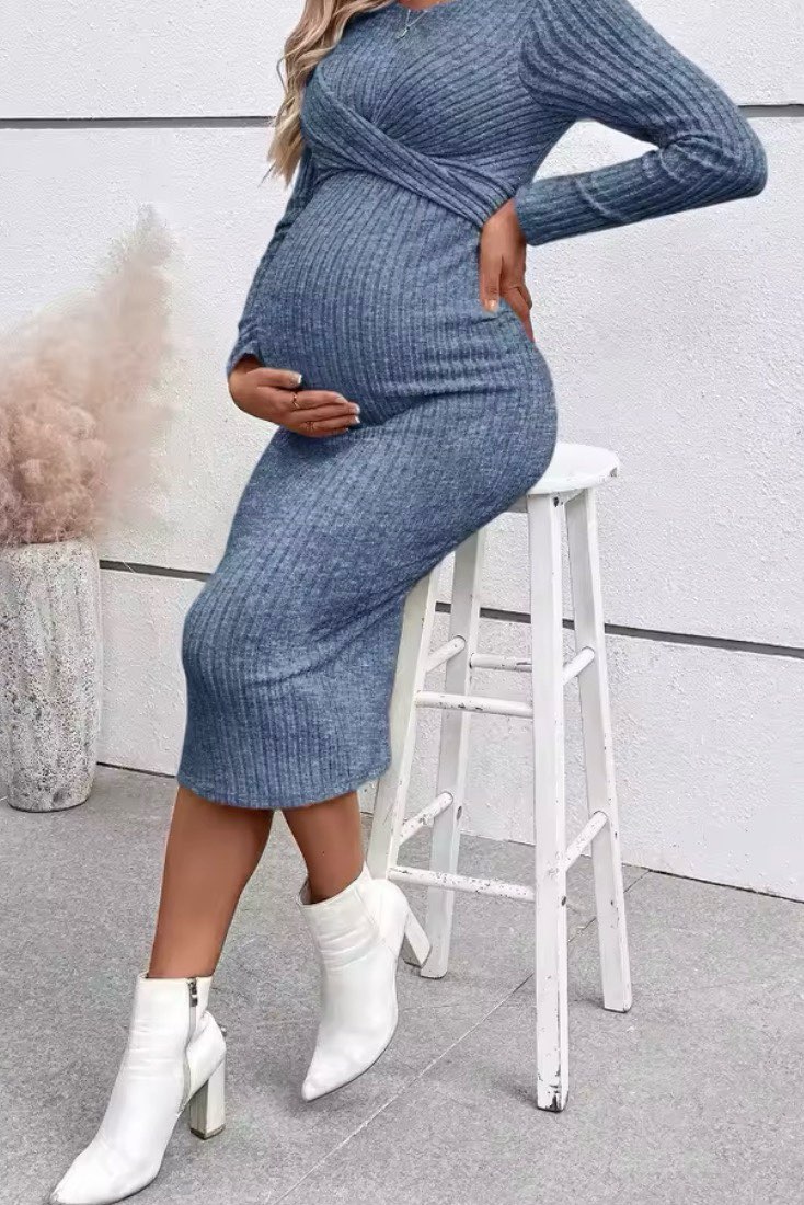 Vestido de maternidad vestido de manga larga para mujeres embarazadas elegante anudado adelgazante vestidos de embarazo ropa de maternidad de manga larga