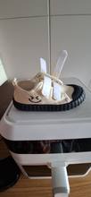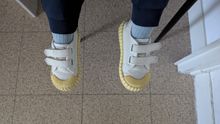 Always take half a size larger, otherwise it will be too small. Overall, it's soft and has enough space inside for fingers, the child doesn't seem to complain. The foot size is approximately 15.5cm, I took 16cm. The only thing I don't like is that the Velcro is too long, as if the shoes are designed for thick feet, but for a regular foot, you need to take a little more so that the shoes don't dangle, and because of this, the Velcro sticks out as shown in the photo.