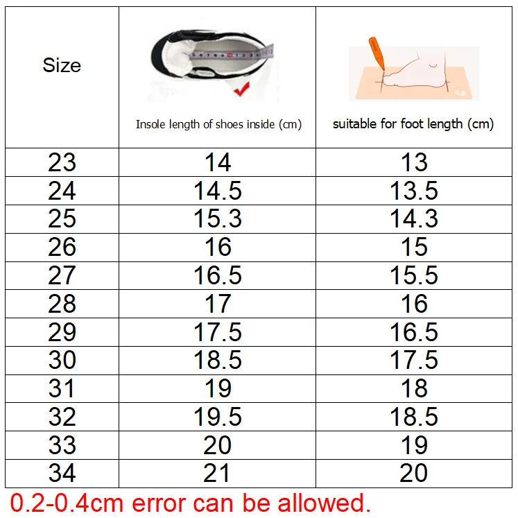 Los zapatos son muy bonitos. A mi hija le encantaron. Según la tabla de tallas, pedí la talla 32 para un pie de 18.5 cm. Pero resultaron ser demasiado grandes. Para un pie de 18.5 cm, necesitas pedir la talla 31 según la tabla del vendedor.