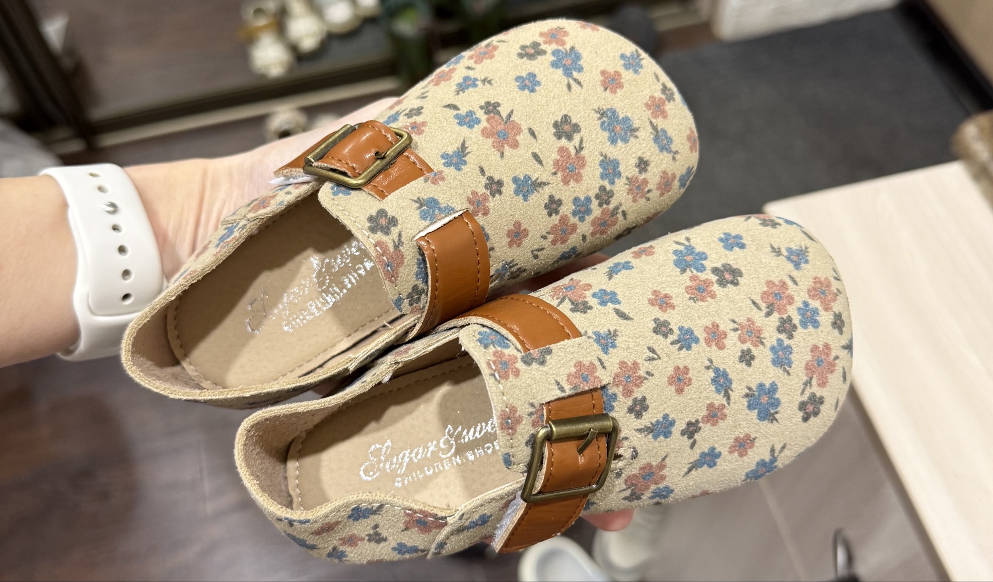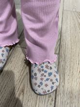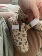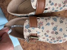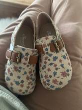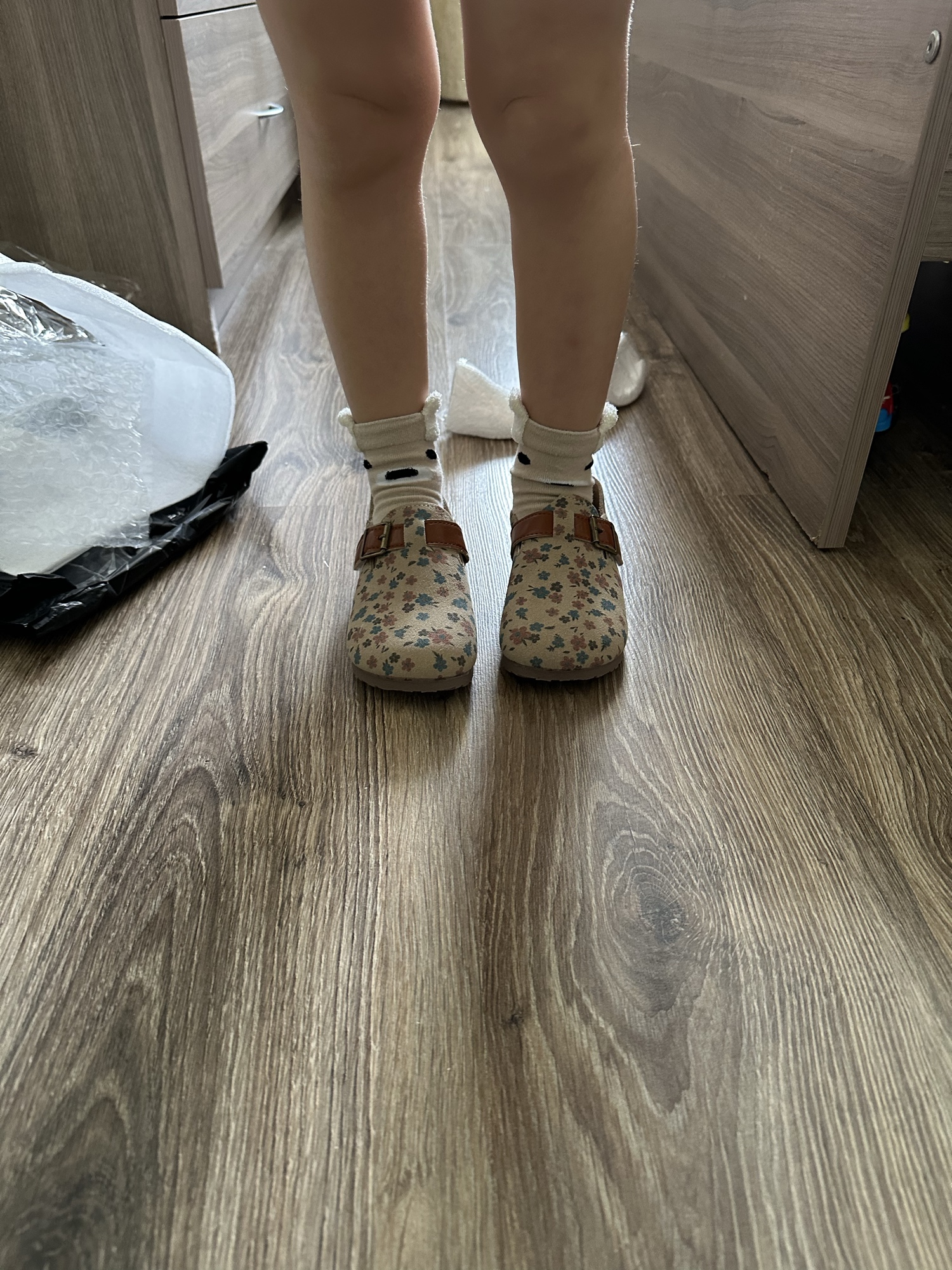 Zapatos pequeños y bonitos. Tomé la talla 24 para un pie de 13.5 cm - todo queda perfecto, no se resbalan, hay espacio para el crecimiento y movimiento del pie al caminar.