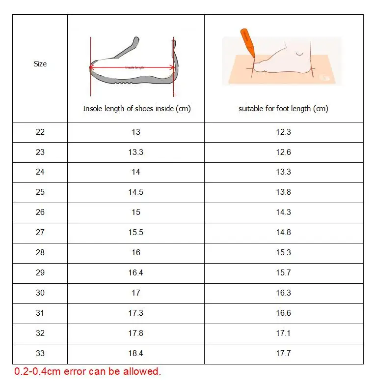 I ordered size 32 because it is supposed to measure 17'8cm, but my daughter's foot measures 17cm and they fit super tight.